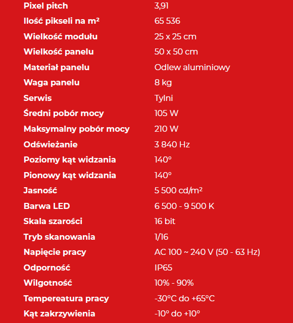 Parametry techniczne ekranu LED P4 oraz P3 znajdują Państwo na dostępnych zdjęciach