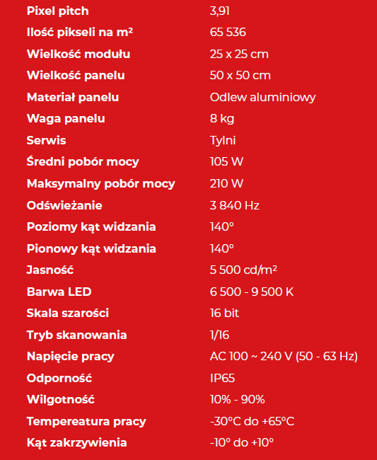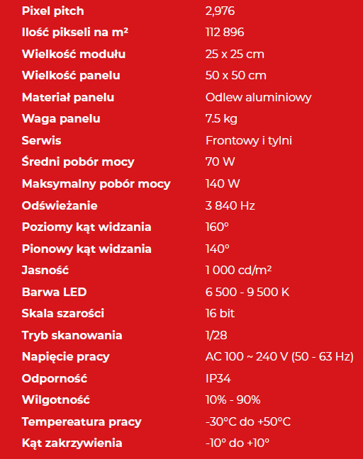 Telebim LED Pixel P3 HD najważniejsze informacje (pełna specyfikacja na zdjęciach):